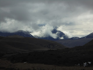 campervan. When it is not raining and the sky is clear, the world is frozen! Yesterday night my breath had frozen on the inside of the van and I couldn't get the main sliding dor open, as it had frozen solid. It is a very frustrating, as I know I'm driving through spectacularly beautiful countryside, but there is little to see, as the clouds are so low and heavy with rain, the views are obscured. The rivers are angry and engorged with dirty grey-brown glacial water, laden with sediment, from the higher mountains. There is very little traffic, even though this is a main highway and I have seen perhaps 20 cars pass me in the opposite direction during the day. The rivers are sometimes overflowing, flecked with white foam, or meander, lost, in a river valleys that have been made far wider than their current form by their much bigger, icy forefathers. Small waterfalls rush down the side of the cliff face, sometimes splashing out over the road as I pass.I fall asleep at night thinking of rock falls, landslides, floods and skidding in the van and falling down deep ravines.